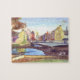 O Quebra-cabeça de Jigsaw impresso de uma pintura de Oldgate Bridge, Morpeth, ao fundo, é a Clocktower, uma rairity na Inglaterra.