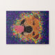 A cara feliz do pitbull do pop art colorido, um bocado insolente com um piscar os olhos, em um fundo de roxo & do azul mergulharam brushstrokes. Disponível em uma variedade de produtos em minha loja de Zazzle, zazzle.com/DoggyStyleStudio.