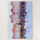O porto do barco com veleiros amarrou ao longo de um beira-rio das lojas e dos cafés. Cores vermelhas, do azul e da lavanda. Arte por REIFSNYDER©