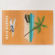 Porto Rico ilustrou o impressão do mapa apresentando um velho barco de pesca de madeira em uma praia arenosa.