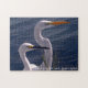 Esta Quebra-cabeça de Jigsera é uma fotografia original de duas aves da costa brancas, longas, necrotadas, posando pelas águas azuis profundas do oceano. O pássaro com o bico preto longo e pontiagudo é um arrependimento de neve. O pássaro com o bico laranja amarelo longo e pontiagudo é um excelente. Há texto identificando os pássaros no canto inferior da quebra-cabeça. Esta opção está definida para você personalizar ou excluir se preferir.