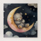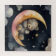 Uma ilustração sonhadora de uma cinza sonolenta descansando sobre uma lua crescente, cercada por estrelas em um céu noturno macio. Perfeito para decoração infantil, presentes infantis, e qualquer um que ama arte animal adorável com um tema noturno caloroso. Ideal para sotaques confortáveis em casa ou decorações de quarto de bebê.