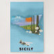 Ilha Sicília Mapa ilustrado com impressão-poster de viagens.