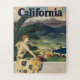 Linda Califórnia de dias passados em uma poster viagens vintage traz montanhas e vale juntos em belos tons sutis.