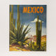 Viagens vintage do México. Cores do deserto e cena do cacto.