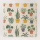 A cheerful and modern repeating pattern featuring a variety of popular houseplants in colorful pots. Monstera, snake plant, and other leafy greens are illustrated in a clean, minimalist style with terracotta, yellow, and gray pots scattered across a soft cream background. The simple, flat design creates a fresh, trendy, and versatile pattern perfect for plant lovers.