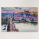 Quebra-cabeça Praga, Quebra-cabeça do pôr do sol com o Castelo de Hrad e Charles Bridge, famoso marco na República Checa. Viagem na Europa.