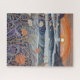 Quebra-cabeça de amor e praia? Esta é a quebra-cabeça perfeita para você. Linda cena do sol sobre costas rochosas com ondas e flores silvestres. Sombras de laranja, azul e roxo fazem uma deliciosa cena costeira.