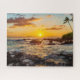 O espetacular sol sobre o Oceano Pacífico da praia Secreta Cove. Água turquesa com rochas de lava e palmeiras cercadas por cores vibrantes. Disponível em todas as dimensões. O tamanho 20 x 30 é a imagem do cheio sem recortar.