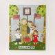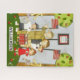 Quebra-cabeça de família bonita com pai, mãe e três filhos. Para personalizar editar texto para alterar o nome e o ano.