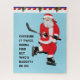 Quebra-cabeça de Natal de hóquei criativo com uma linha engraçada e Papai Noel com um bastão de hóquei no gelo.