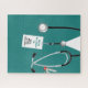 Quebra-cabeça criativo "Melhor Enfermeira" com scrubs, estetoscópio, canivete suíço engraçado e crachá. Edite o texto para personalizar o nome.