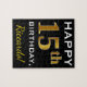 Características deste design do quebra-cabeça a mensagem "15o aniversário feliz", com "15o" tendo o falso ouro-como a aparência. Igualmente caracteriza um nome feito sob encomenda, e um preto coloriu o fundo. Poderia ser dado a alguém que está comemorando seu décimo quinto aniversário.