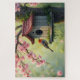 Um pássaro vermelho em uma casa de pássaros com telhado de azulejo colocado em uma cerejeira florida cria um adorável quebra-cabeça de quebra-cabeça que é perfeito para qualquer um que ama pássaros, flores e natureza.