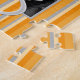 Daises africanos Flash primavera são lindas flores. Esta modelo quebra-cabeça personalizada é adornada com uma cinza moldada desaturada, fotografada de perto, deixando a cor na margarida de marfim aberta florescer e bud fechada para se destacar sobre um fundo listrado, laranja, marfim e cinza. O texto é marcado como oval riscado. Preencha o campo modelo com suas palavras, nome ou iniciais e/ou personalize para selecionar um estilo de fonte, tamanho e cor diferentes.