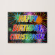 Esta vibrante, empolgante design de quebra-cabeça de quebra-cabeça com tema de aniversário exibe a mensagem "FELIZ ANIVERSÁRIO, CHRISTOPHER", tendo um espectro colorido de arco-íris inspirado em um padrão de gradação inspirado, e um fogo de artifício celebratório animado inspira um padrão de fundo. Um quebra-cabeça vibrante como este pode ser usado para enviar desejos de aniversário a alguém chamado Christopher. [~Z0000465]