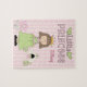 O quebra-cabeça da menina doce, com gráficos de uma menina que veste uma coroa, ao lado de uma flor cor-de-rosa e de um treinador da abóbora. O fundo é feito em um teste padrão cor-de-rosa da listra, com texto gráfico, na parte superior, lendo a princesa pequena. O texto cor-de-rosa da sombra está pronto para personalizar com nome da sua princesa pequena.