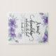 O quebra-cabeça de serra de amizade retrata um simples design de aquarela floral com flores lavandas, azuis e roxas. Ele apresenta uma citação inspiradora tirada da Bíblia Verse Proverbs 27:9, "Uma doce amizade refresca a alma."