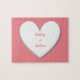Quebra-cabeça de coração fofo. A cor de fundo e o texto podem ser personalizados.