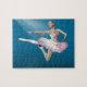 Um projector brilha em uma bailarina em um traje cor-de-rosa e branco enquanto pula no ar nesta imagem temático do balé. O fundo é um azul profundo. Um braço é prolongado e o outro é trazido dentro a seu lado. Personalize adicionando seu próprio subtítulo, nome, ou monograma ao produto.