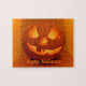 Esta quebra-cabeça de Halloween está pronta para você personalizar com sua própria legenda de texto se desejar. Criado com uma foto de uma grinagem clássica esculpida jack'o'lantern bompkin em cores laranja vívidas e amarelas.