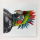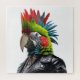Engraçado Punk Rocker Parrot com o penteado mohican vestindo uma jaqueta de couro.
