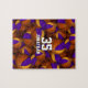 This custom basketball jigsaw puzzle for boys or girls features a pattern of varied size basketballs turned every which way - two of the panels on some of the basketballs have been recolored--one purple and one gold - customize with basketball player's name and jersey number - by katz_d_zynes