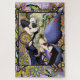 Fada de fada loira vestida roxa e vermelha num padrão geométrico floral de verde, ornamentação, lavanda e rosa,