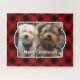 Modelo de fotos de Natal divertidas com um padrão de xadrez vermelho e preto. Copyright © Angi Laframboise. Personalizável, personalizado, presentes temáticos de Natal.