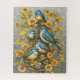 Uma representação artística de aves azuis e lacrimogêneas polinizadas entre flores de ouro e ramos entrelaçados, mostrando detalhes intrincados e uma paleta de cores harmoniosa. Onde vivem num mundo de flores lindas e padrões únicos. Essa imagem altamente detalhada é perfeita para quem gosta de quebra-cabeça com muito para ver. Perfeito para famílias e amigos que amam aves.