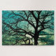 Este dramático quebra-cabeça de serra de vidro ostenta uma silhueta de árvore nua contra um pôr do sol no Morton Arboretum em Lisle, Illinois, EUA.