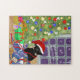 Andy, o Labrador preto está definida no problema grande agora, estando tão ansioso para abrir seu presente do Natal. Labrador preto, Natal, problema, quebra-cabeça de serra de vaivém