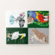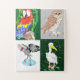 Quebra-cabeça, 8" x 10", 110 pedaços de mídia usados CORES DE CHEIO DE DESENHO DE CANETA E TINTA Pelicano, Coruja, Papagaio e gruas