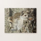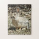 Quebra-cabeça de rabo de algodão. Tanto em casa nos parques urbanos como na natureza é o coelho rabo de algodão. Este coelhinho bonitinho estava vivendo numa caminhada perto de onde eu moro.