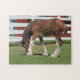 Esta design apresenta uma fotografia de um cavalo a pastorear num campo. Um quebra-cabeça de fotografia que trará horas de prazer a todos.