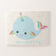 Quebra-cabeça Rainbow Narwhal Kawaii Padrão Pastel Nome Azul