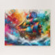 Rainbow Splatter Paint Design of Pirate Ship at Sea