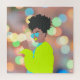 "Um desenho animado e divertido de uma garota negra dançando em uma festa, cheio de alegria, movimento e celebração."