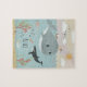 Este quebra-cabeça design bonitinho e caprichoso mostra um desenho de criatura marinha, com um peixe-espada, caranguejo, baleia assassina (orca), peixe e algas, e tem espaço para você adicionar seu nome de meninas em uma fonte escrita à mão. O dom temático perfeito para qualquer amante do oceano.