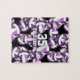 Este quebra-cabeça de guisado de vôlei para raparigas apresenta um padrão de diferentes tamanhos, roxo e volichões brancos virados de qualquer forma num fundo preto - alguns dos painéis roxos de vôlei têm sotaque de zebra selvagem - personalizam-se com o nome e número de camisola do voleibol - por katz_d_zynes