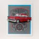 Esta é uma renderização de um carro clássico criado usando gizes e marcadores com fundo adicionado digitalmente.
