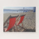Bright red chairs rest quietly against a soft sandy shoreline. Their color adds warmth without overpowering the calm setting. The simple composition makes this puzzle both inviting and relaxing. Subtle background details maintain interest throughout assembly. Ideal for casual puzzlers and seaside lovers alike. This scene captures a peaceful pause in a beach day. Created from original travel photography, it reflects quiet coastal charm.