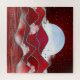 design de paisagem abstrato em vários tons de vermelho com um luar, colinas, árvores, nuvens e aves.