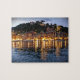 Lembre-se de suas noites em Portofino romântico ou ansioso pela sua primeira visita quando desafiar suas habilidades de fazer com esta foto das luzes da noite refletindo nas águas do porto. quebra-cabeça de serra de 8 x 10 polegadas com 110 peças.