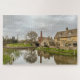 A vila pitoresca de Lower Slaughter, com sua moenda de água e cabanas de ouro, reflete-se na água tranquila do rio Eye.