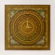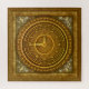 Um relógio barroco ornamentado de madeira embelezado com aves, flores e plantas em verde e rosa. O quadro tem um aspecto de folha de ouro queimado. O relógio está no centro da moldura, tem uma aparência de metal em latão e é muito detalhado e decorativo com números de ouro.