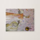 Uma pintura digital de um Smew em um vestido cor-de-rosa com colares de rendas. Há uma cadeira com um vestido branco e um chapéu repousando nela. Um retrato antigo de uma cabeça de pato numa armação de madeira redonda e marrom-escura, pendura na parede. A parede é papel de parede rosa com aves tropicais. Copyright ©2017 Kimberly J Tilley.