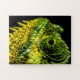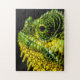 Um quebra-cabeça de serra com o retrato fotográfico de um camaleão. Este quebra-cabeça é totalmente personalizável. Você pode adicionar uma mensagem ou qualquer texto ou pode alterar o tamanho e a quantidade de partes do quebra-cabeça para definir o nível de dificuldade como preferir.