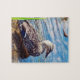 Foto de uma fêmea de pato Mallard parada na área rasa de um lago, com ondulações d'água se afastando dela em movimento circular. Copyright Kimberly J Tilley.