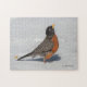 Parte do cérebro, parte da arte de montar-você-mesmo, este quebra-cabeça bicho-branco, com o tema da vida selvagem é excelente para melhorar a memória muscular. Uma ideia de presente de excelente para a natureza e amantes de pássaros! Alguns consideram o pinto como um prendedor de primavera, mas uma queda de neve durante todo o dia e temperaturas quase de dois dígitos abaixo de zero na manhã seguinte foi o que trouxe dez Robins americanos chamando a rápida diminuição do suprimento de bagas piracantha. Alguns, como esse cara, estavam pensando qual comer primeiro. Espero que ele tenha visto a sombra. Fotografado no final de fevereiro de 2018. Baseado na fotografia original de W.H. Sim. Todos os Direitos Reservados. Mais informações em zazzle.com/walkswithnature